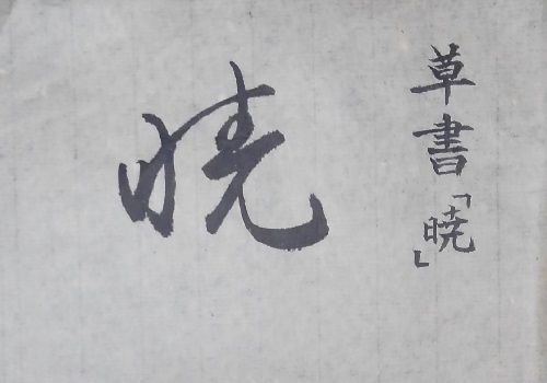最後の題材は草書の「暁」。造形としては1つ目と同じく、偏と旁を縦に並べた構成です。違うのは、上下の2つのパーツの間に余白を設けたところですね。