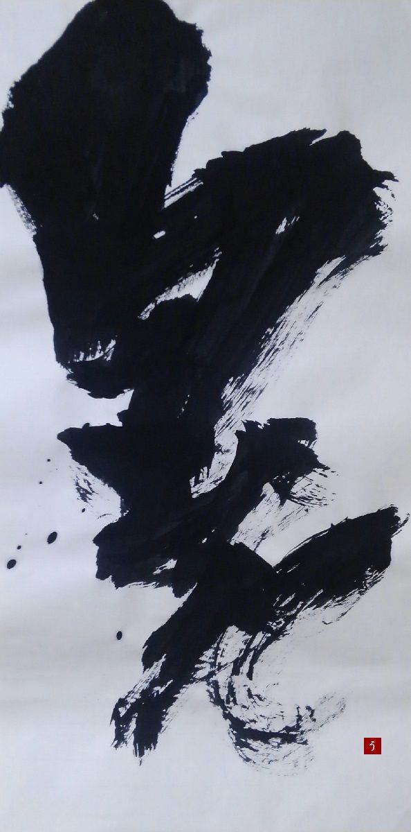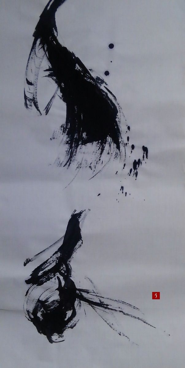 この作品は墨飛沫の位置にかなりこだわりました。まだ模索中ですが、これまでの何となく飛ばしていた墨飛沫よりは効果的になったと思います。