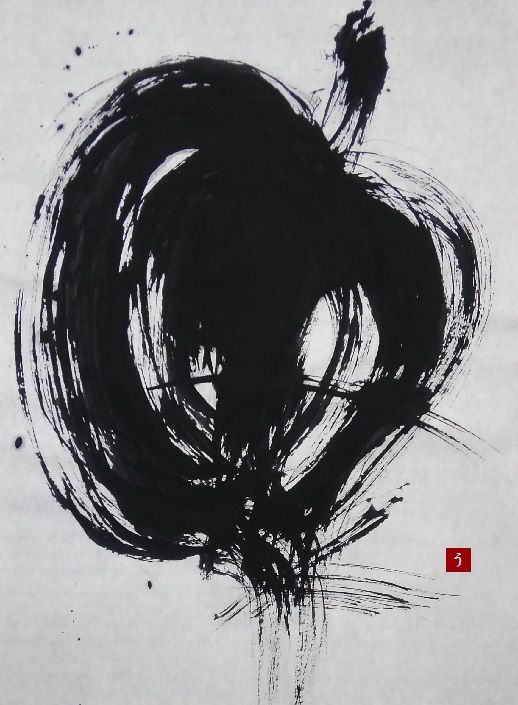 タイトルは「墨の心」。過去作品より墨量を増やして迫力を出しました。元々のコンセプトである「ハート」は少し崩れて「丸」になっていますが、これはこれということで…。