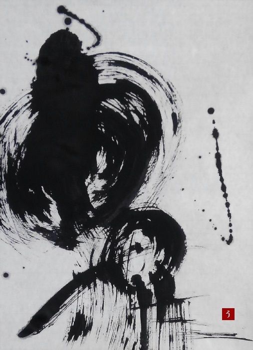 ブログ1周年の記念作品です。100枚目の墨象作品ということで題材は「百」。回転する線を主役にしています。勢いがあるので大きな作品向きかもしれません。